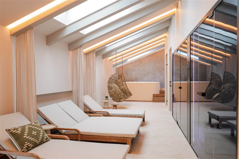 Nové wellness: finská sauna, Jacuzzi vířivka, Hammam sauna, relaxační zóna s lehátky. Možnost privátního pronájmu – 100 minut pro 1 až 10 osob (nutno předem rezervovat).