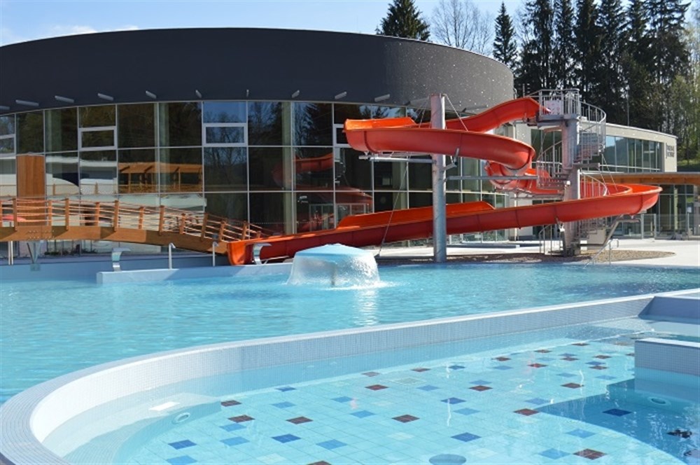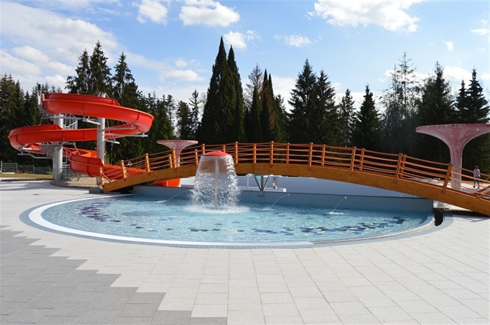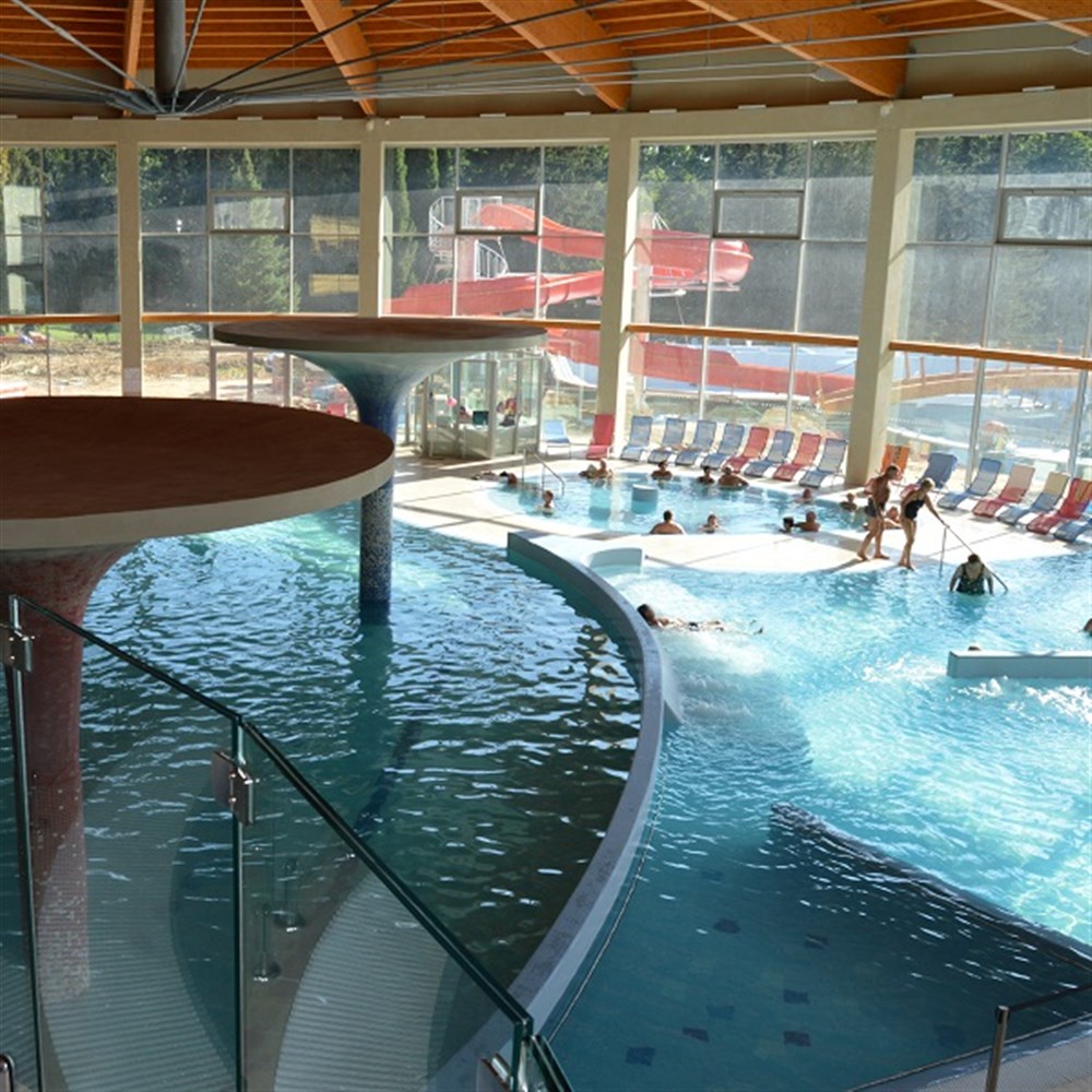 • aktivní bazén s vodními atrakcemi - divoká řeka, jeskyně, chrliče (teplota vody 30 - 32 °C)