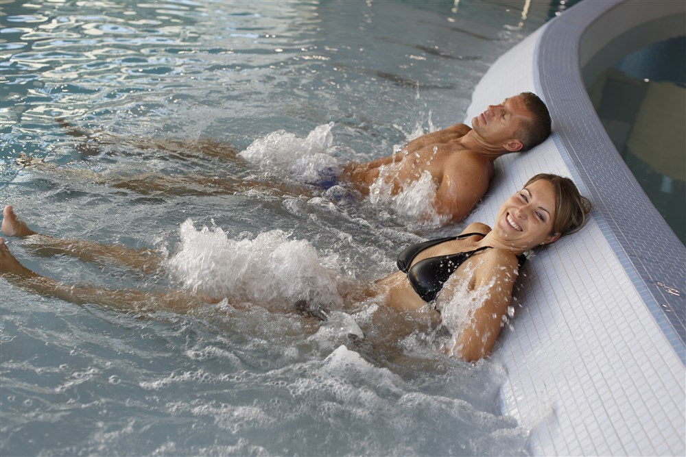 • termální bazén s relaxačními perličkovými lehátky a sedátky, hydromasážní trysky (teplota vody 32 - 34 °C)