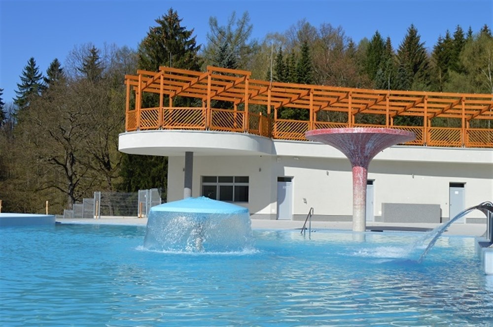 • dětský bazén s vodními atrakcemi - hřib, skluzavka, trysky přesného plyvnutí (teplota vody 34 - 36 °C)