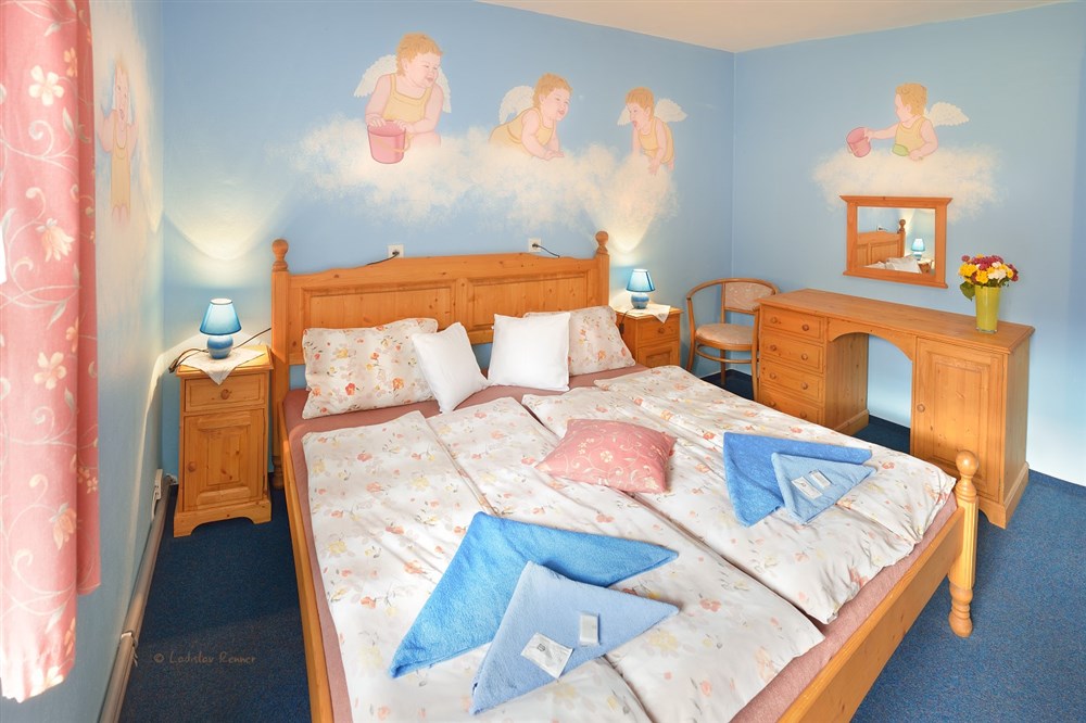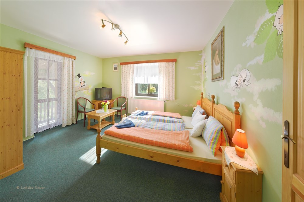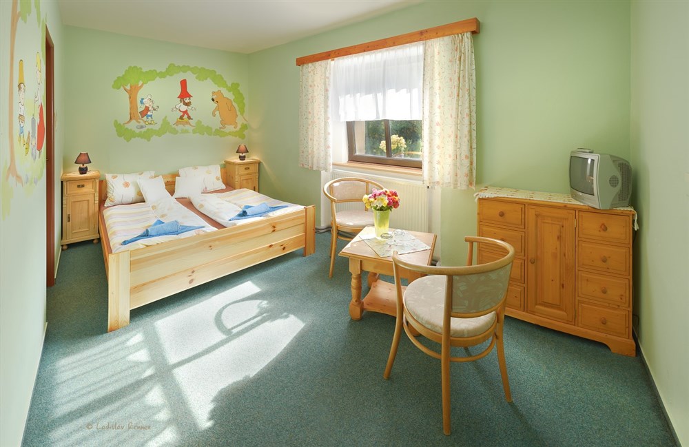 Penzion pěkný, vřele doporučujeme pro rodiny s dětmi, pohádkové motivy nás provázely celým pobytem, neuvěřitelné vybavení ozdobnou keramikou. Možnosti krásných výletů po okolí, zříceniny hradů, romantická krajina. Strava vynikající. Jen pokoj příliš malý, dvojpostel měla jen úzký přístup z jedné strany.