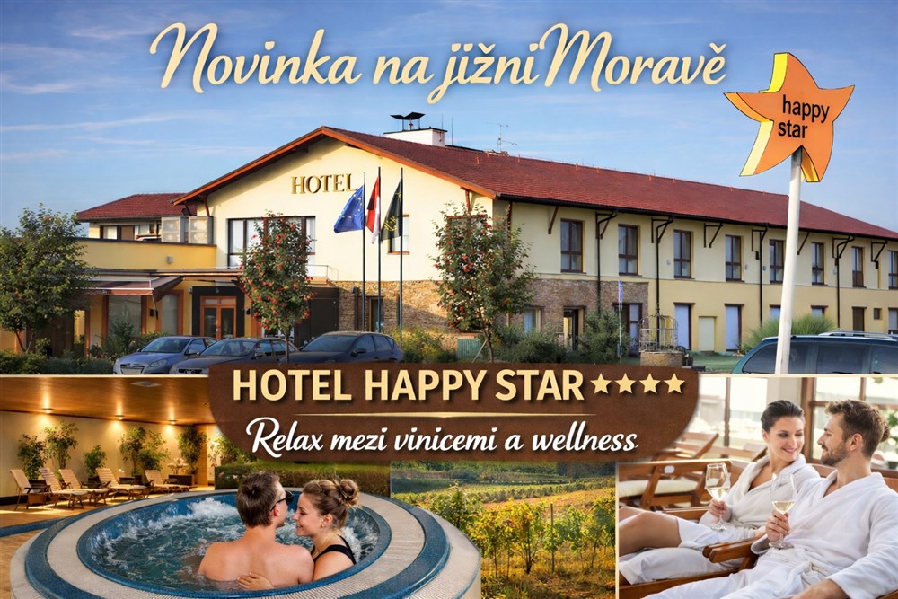 Čtyřhvězdičkový Hotel HAPPY STAR je součástí sportovně - rekreačního areálu, stojícího na okraji obce Hnanice, uprostřed vinařského kraje s centrem v královském městě Znojmo.
