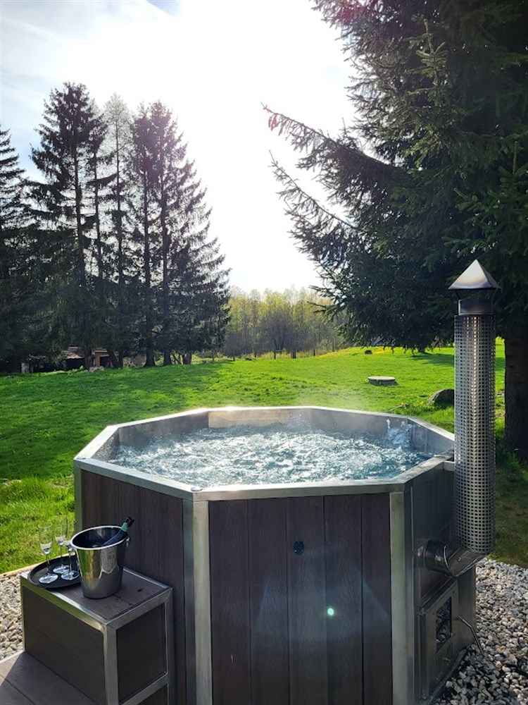 Wellness: finská sauna s odpočívárnou, hydromasážní vana a venkovní vířivá káď s horkou vodou a výhledem na šumavskou krajinu. Na objednávku široká škála masáží a zkrášlovacích procedur.