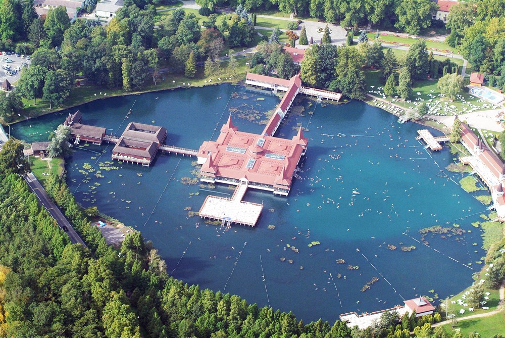 Jedno z největších a nejznámějších lázeňských středisek v Maďarsku. Zde se nachází největší jezero s horkou vodou v Evropě. Teplota jezera je 33-34°C v létě a 26-28°C v zimě. Koupající mohou využívat vody jezera po celý rok, buď venku nebo uvnitř. Oblak jemné páry nad jezerem vytváří neobvyklý pohled - vysoké odpařování činí nejen koupání pod volným nebem příjemnější i v nejchladnějších zimních dnech, ale také příznivě ovlivňuje klima širšího okolí kolem jezera.