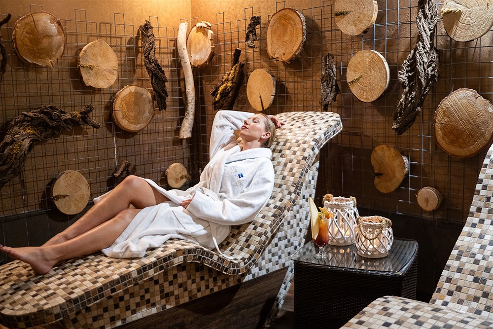 SPA & Wellness centrum: bazén, vířivka, saunový komplex (solná jeskyně, infra sauna, suchá sauna, finská sauna, parní lázeň), tepidárium, jantarová jeskyně, relaxační zóna. Nabídka široké škály relaxačních a terapeutických procedur, ošetření obličeje a těla.