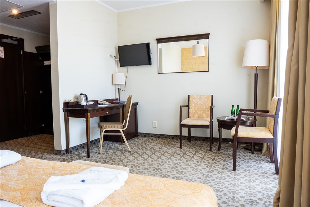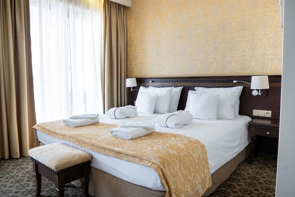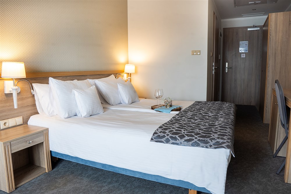2 - lůžkové pokoje ECONOMY s možností dětské přistýlky (16-18 m), Spr.+ WC, trezor, telefon, minibar, fén, Wi-Fi, klimatizace (za příplatek cca 22 PLN/ den), francouzský balkon. Max. obsazenost 2 dospělý + 1 dítě do 12,99 let.