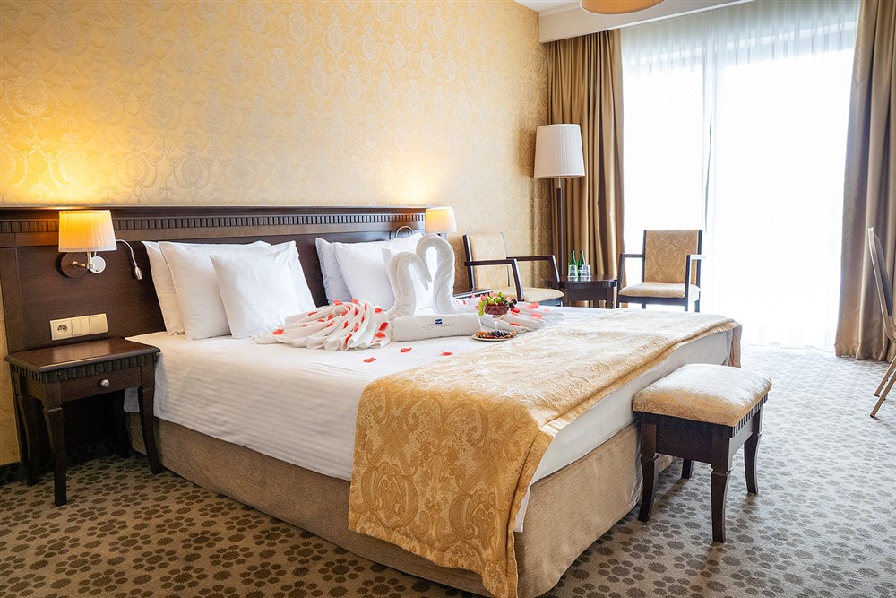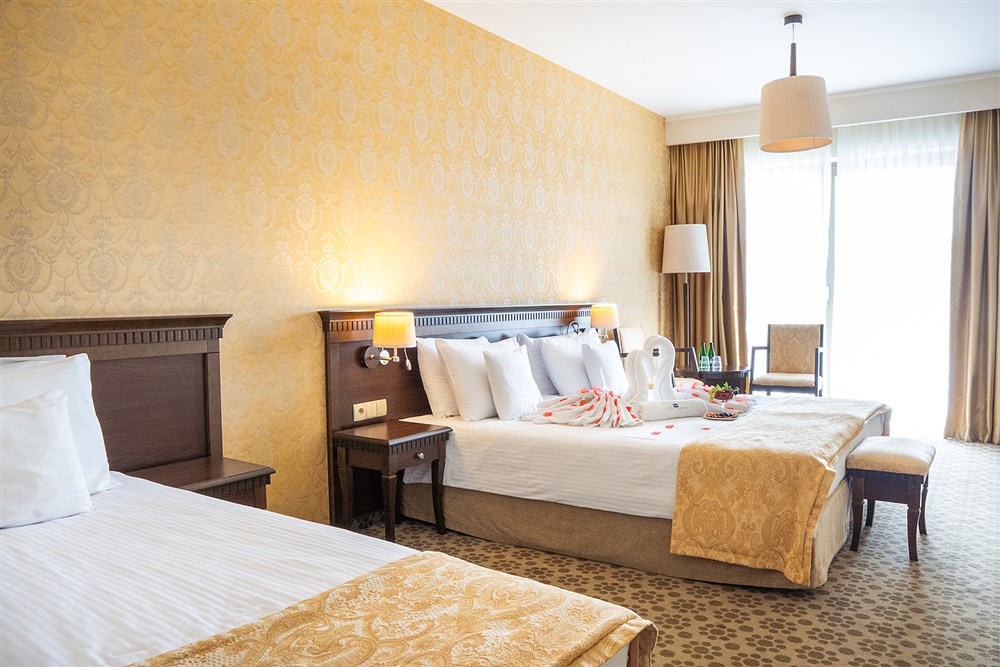 2 - lůžkové pokoje KOMFORT s možností až 2 přistýlek (25-35 m), Spr.+ WC, trezor, telefon, minibar, fén, Wi-Fi, klimatizace, balkon Přistýlka 1x sofa 90x 200 cm nebo rozkládací gauč 140x 190 cm. Max. obsazenost 3 dospělý nebo 2 dospělý + 2 děti do 12,99 let.