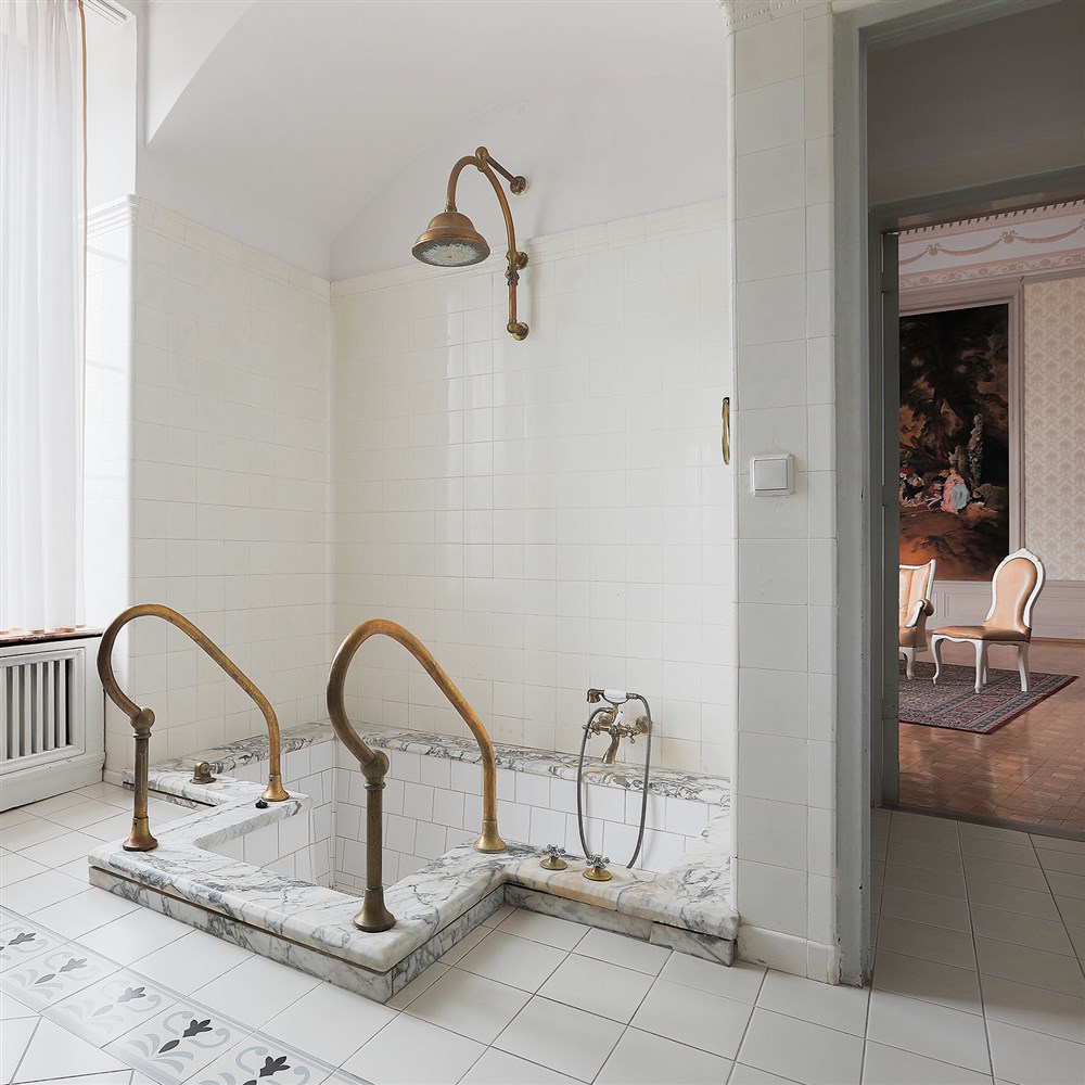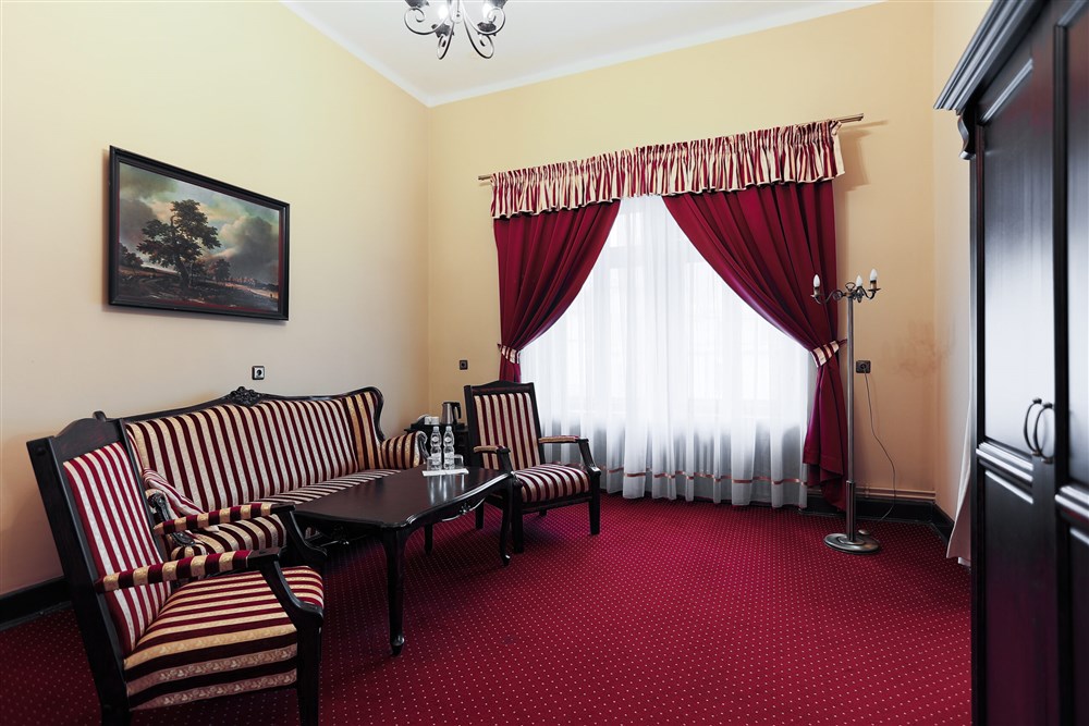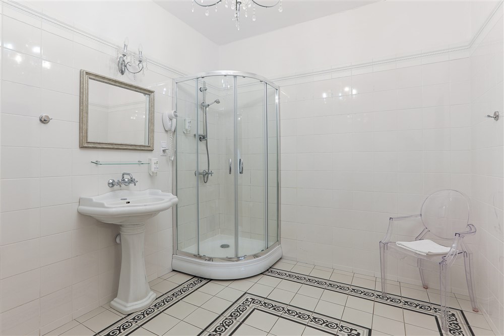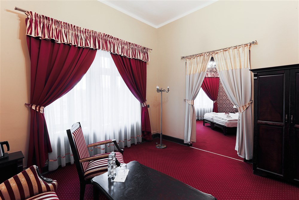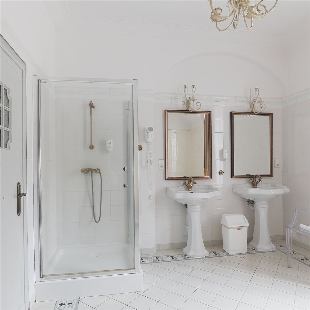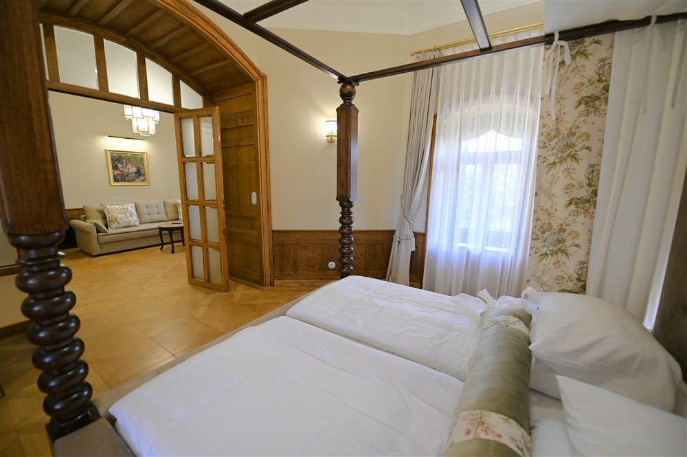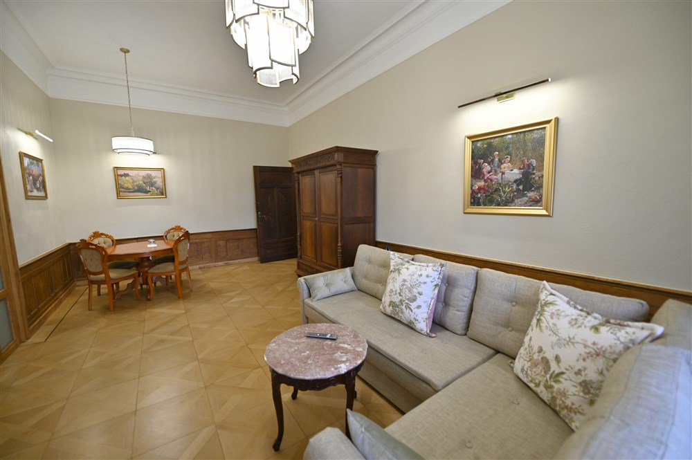 Hraběcí apartmán pro 2 osoby (60m²), Spr. a vana+WC, TV, fén, příslušenství pro přípravu čaje/kávy, toaletní potřeby, ručníky
