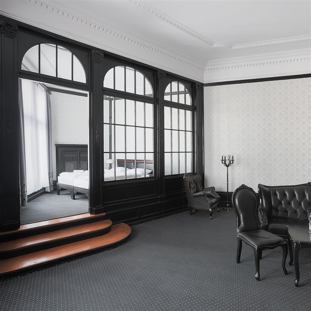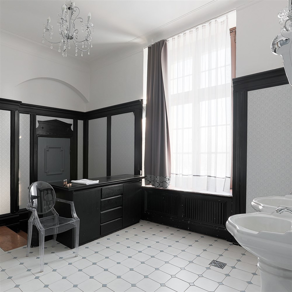 Černý apartmán pro 2 osoby (100 m²), Spr. a vana+WC, TV, fén, příslušenství pro přípravu čaje/kávy, toaletní potřeby, ručníky