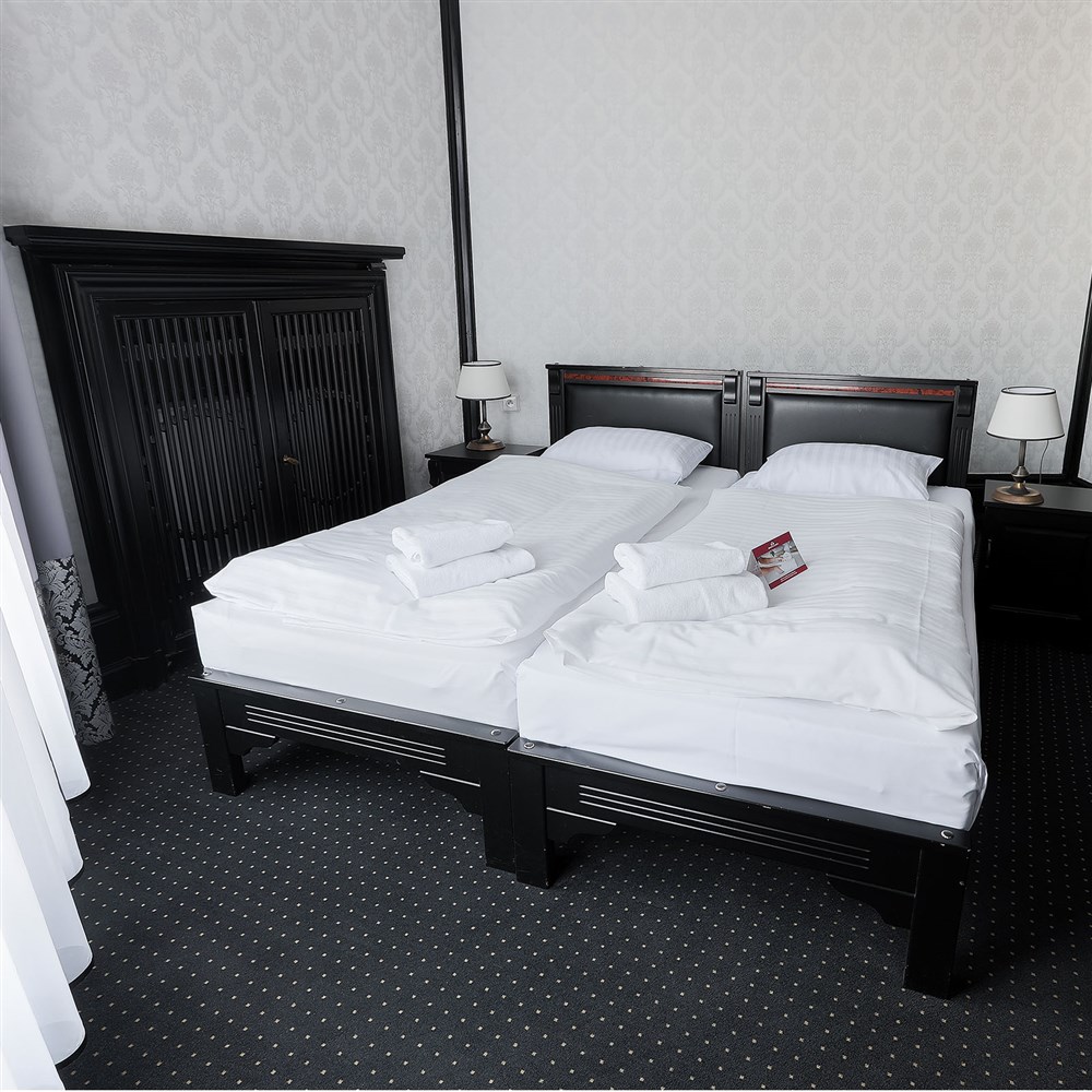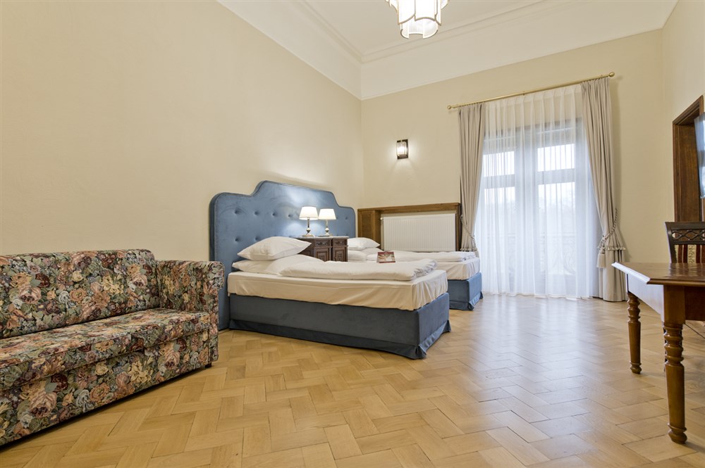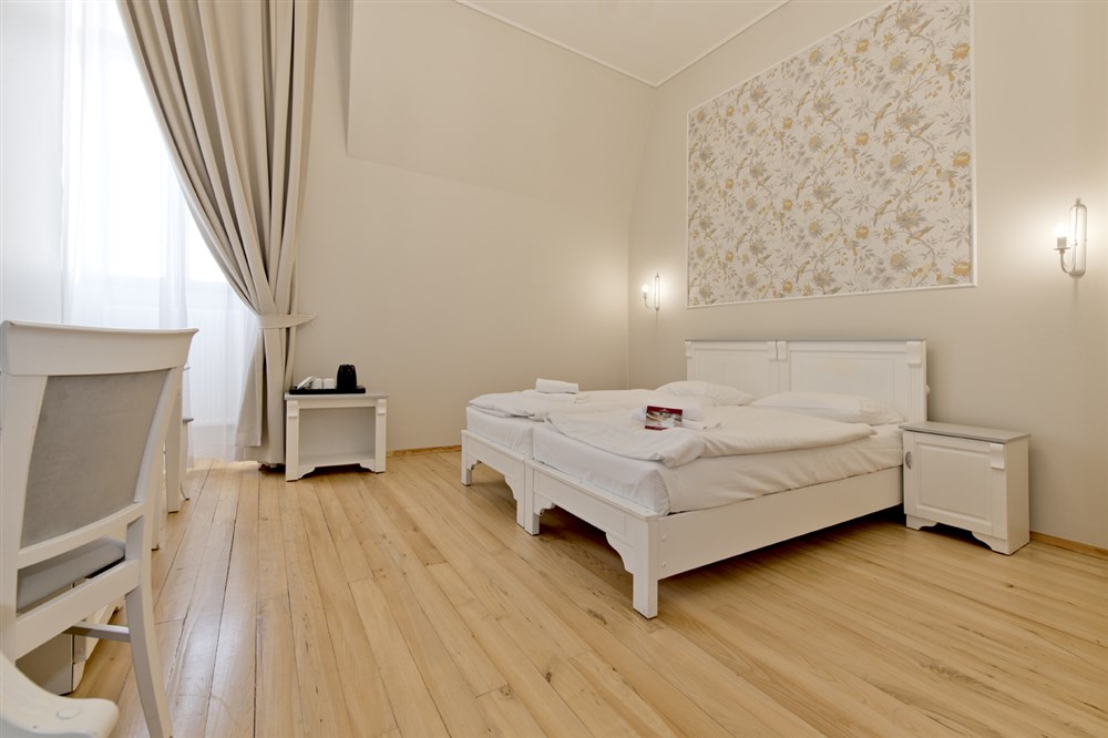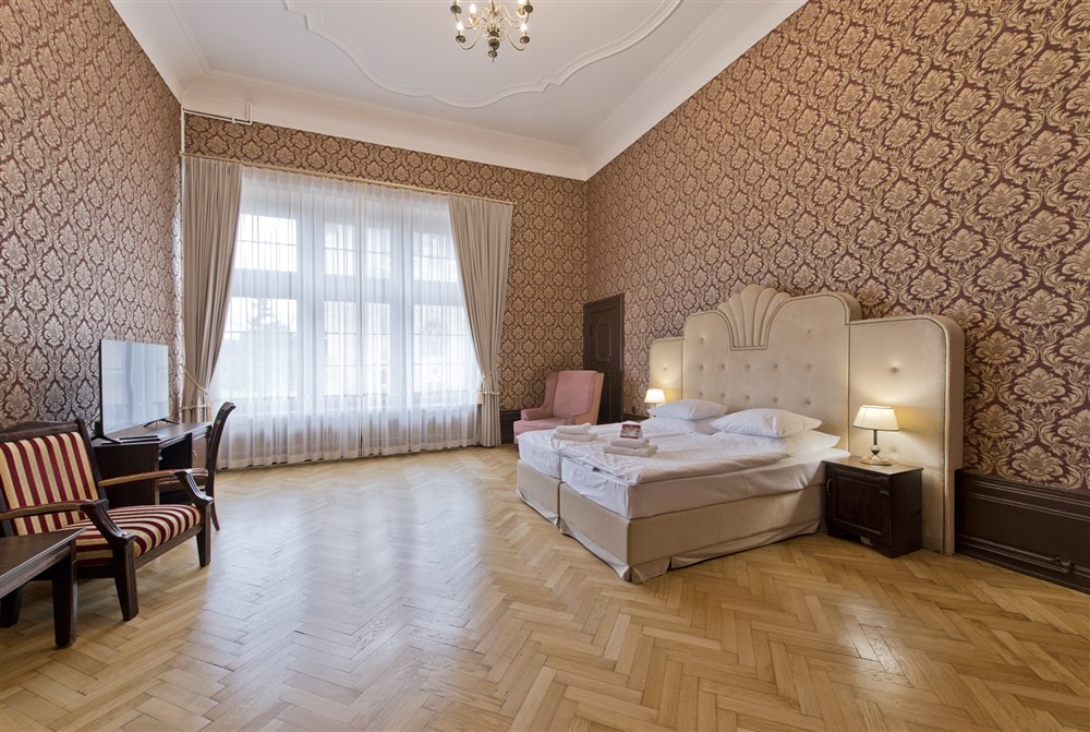 2 - lůžkové pokoje PREMIUM (30 m²), Spr.+WC, TV, fén, příslušenství pro přípravu čaje/kávy, toaletní potřeby, ručníky, výhled na park. Pokoje v 1. a 2. patře. Možnost přistýlky.