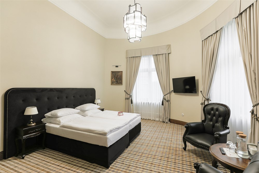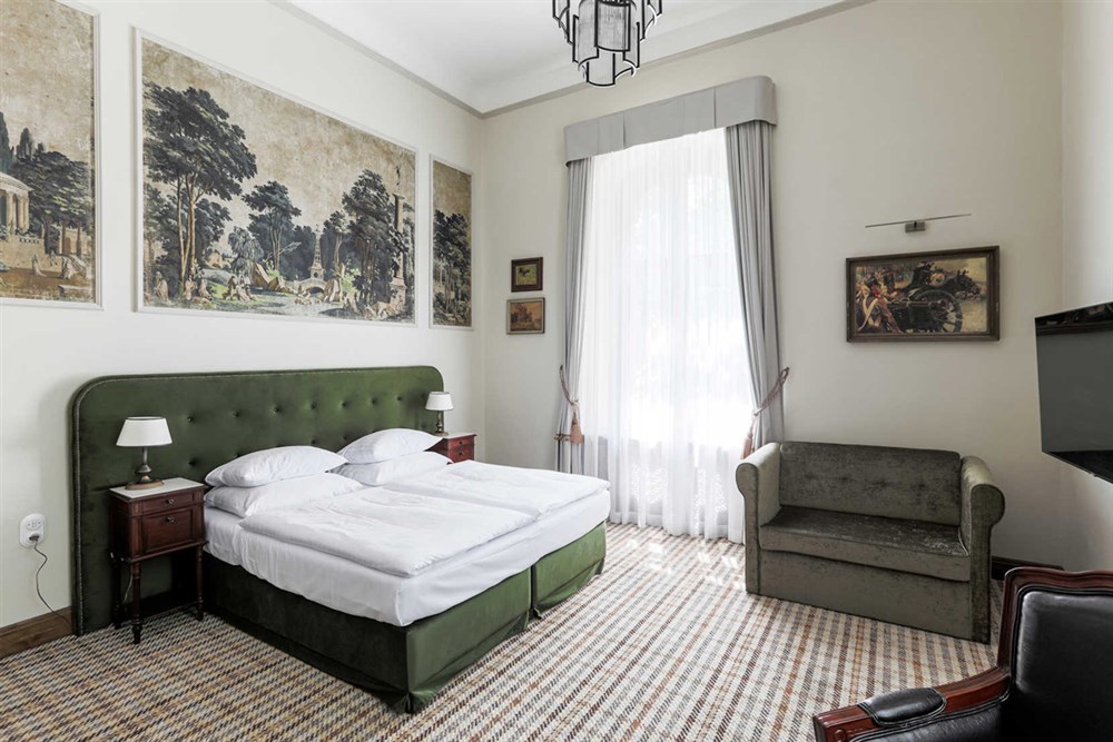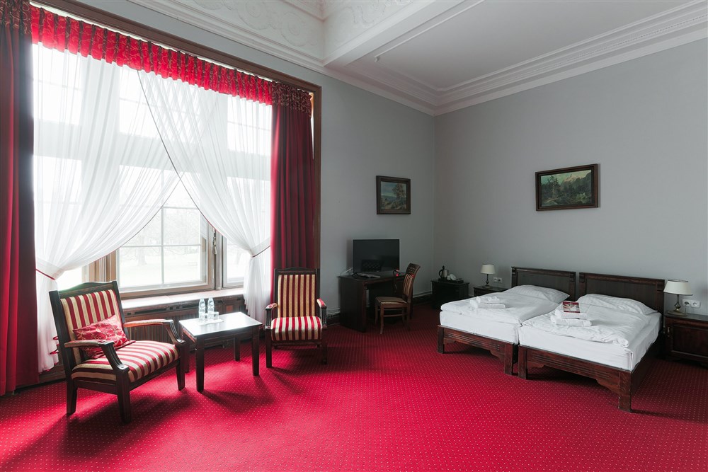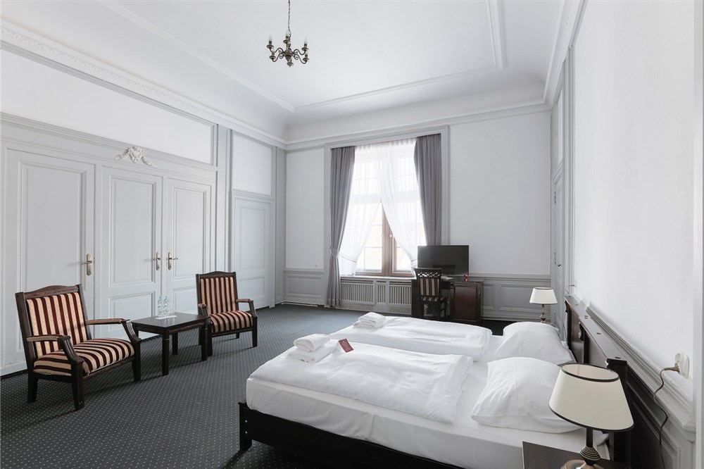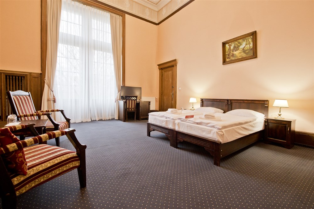 2 - lůžkové pokoje PREMIUM (30 m²), Spr.+WC, TV, fén, příslušenství pro přípravu čaje/kávy, toaletní potřeby, ručníky, výhled na park. Pokoje v 1. a 2. patře. Možnost přistýlky.