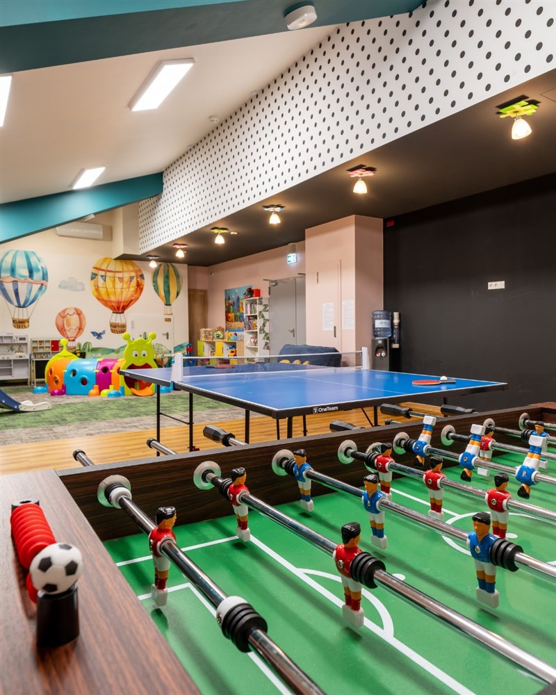 recepce, restaurace, bar, Wi-Fi, relaxační zóna (suchá sauna, parní sauna, posilovna), dětský koutek a herna, půjčovna sportovních potřeb, 2 monitorované parkoviště (venkovní a podzemní).