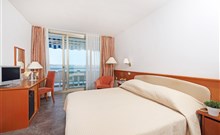 d) 2 - lůžkové pokoje SUP Istrian 2+1 - výhled na moře - s možností přistýlky: 19m2, s manželským lůžkem (160x200 cm) nebo oddělenými postelemi (2x 100x200 cm): Spr.+WC , SAT/TV, klimatizace, minibar, trezor, telefon, rádio, prac. stůl, fén, budící služba/budík, balkon. Přistýlka 65 x 180 cm nebo 90 x 200 cm